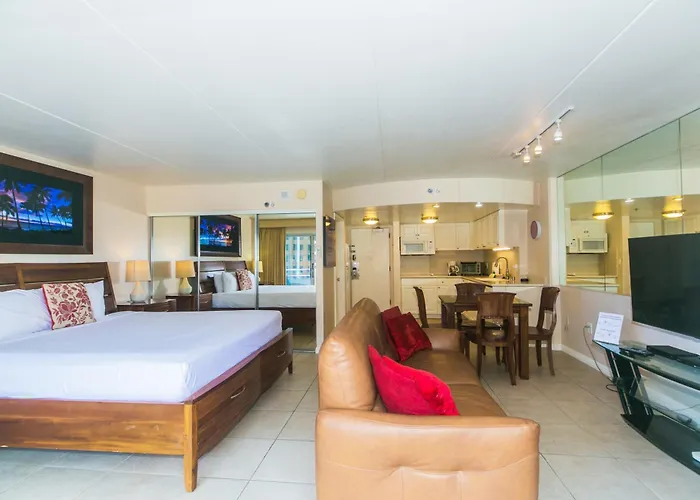 The 1-bedroom Ilikai Tower 1342 Lagoon View 1Br Honolulu villa enjoys its location around 5 minutes' walk from Duke Paoa Kahanamoku Beach Park and overlooks the sea. Providing guests with Wi-Fi and a private parking lot, the accommodation is a mere 1.6 km from US Army Museum of Hawaii|the U.S. Army Museum of Hawaii.